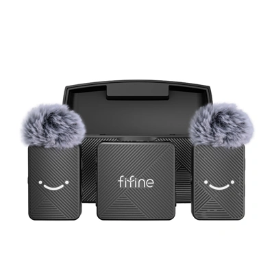 The FIFINE M9 is a dual wireless microphone system with a built-in charging case and USB-C connectivity. Perfect for interviews, livestreams, and mobile content creation, it delivers clear audio with easy setup, compact portability, noise reduction, and stable transmission—ideal for modern creators on the go.